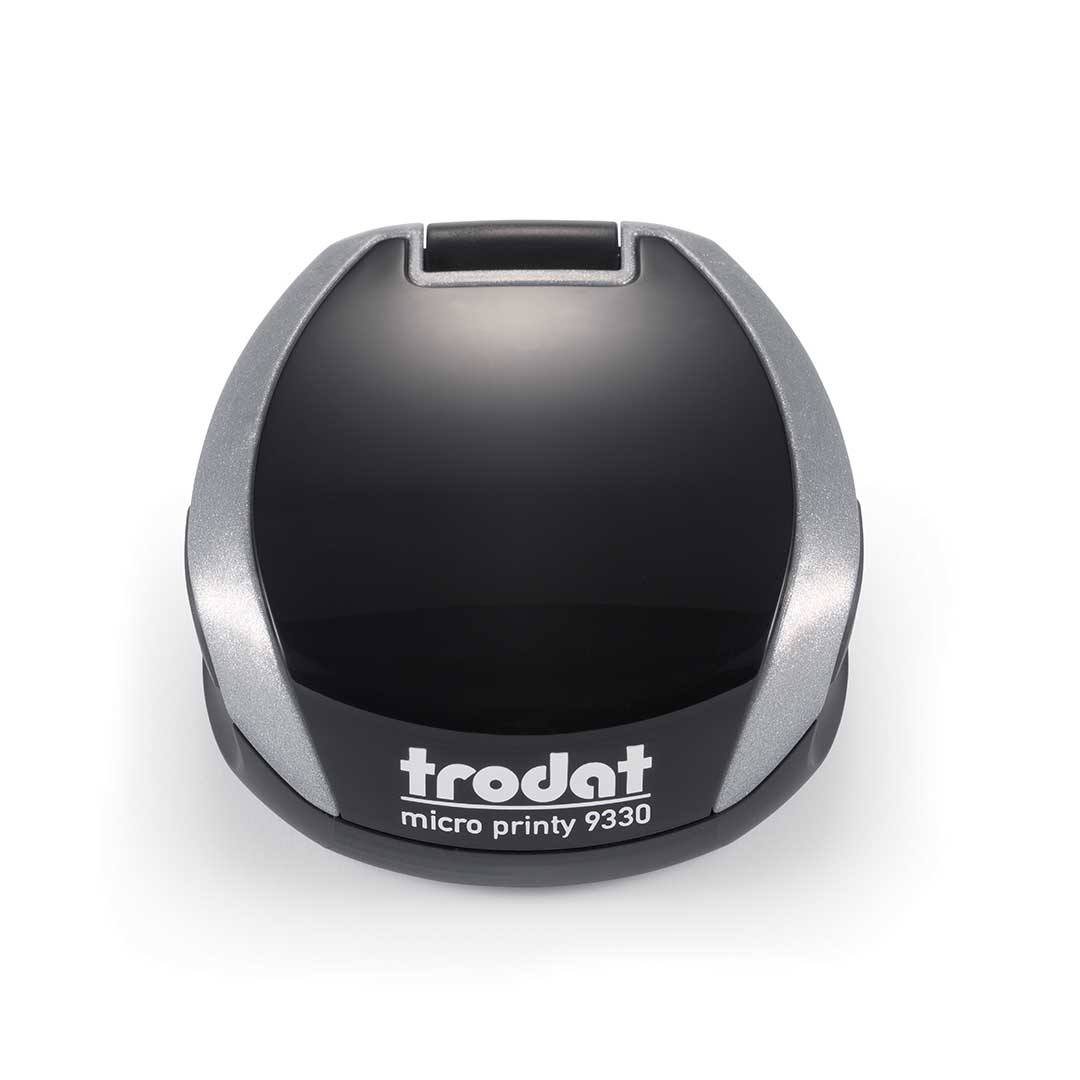 TRODAT PRINTY 9330 Timbro Autoinchiostrante Rotondo Silver diametro Ø 30 mm Testo a 4 righe con Cartuccia Nera