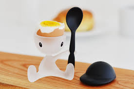 Portauovo con spargisale personale e cucchiaino in resina termoplastica.