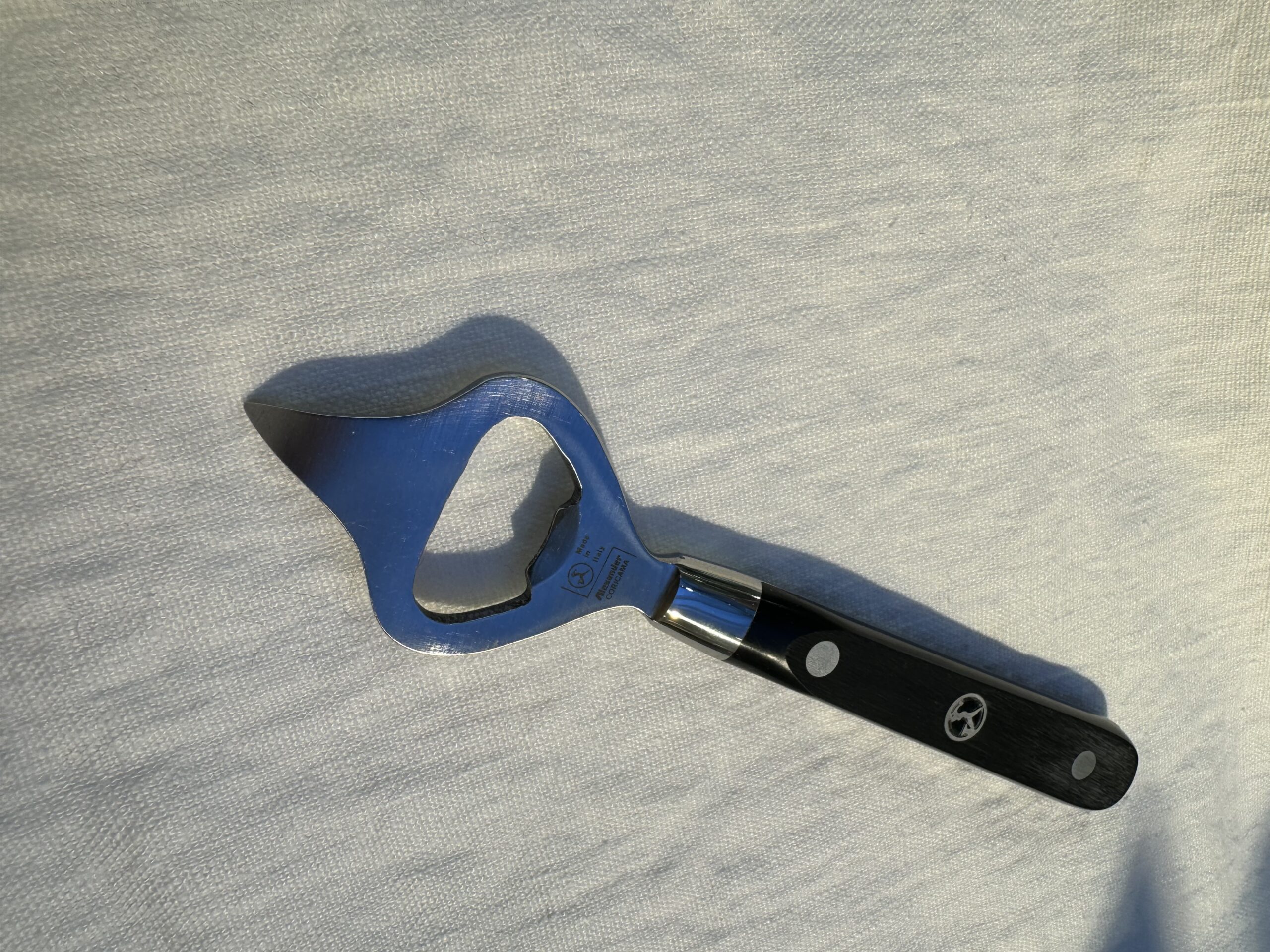 Cavatappi realizzato in acciaio inox, forgiato monoblocco con il manico in resina nero.