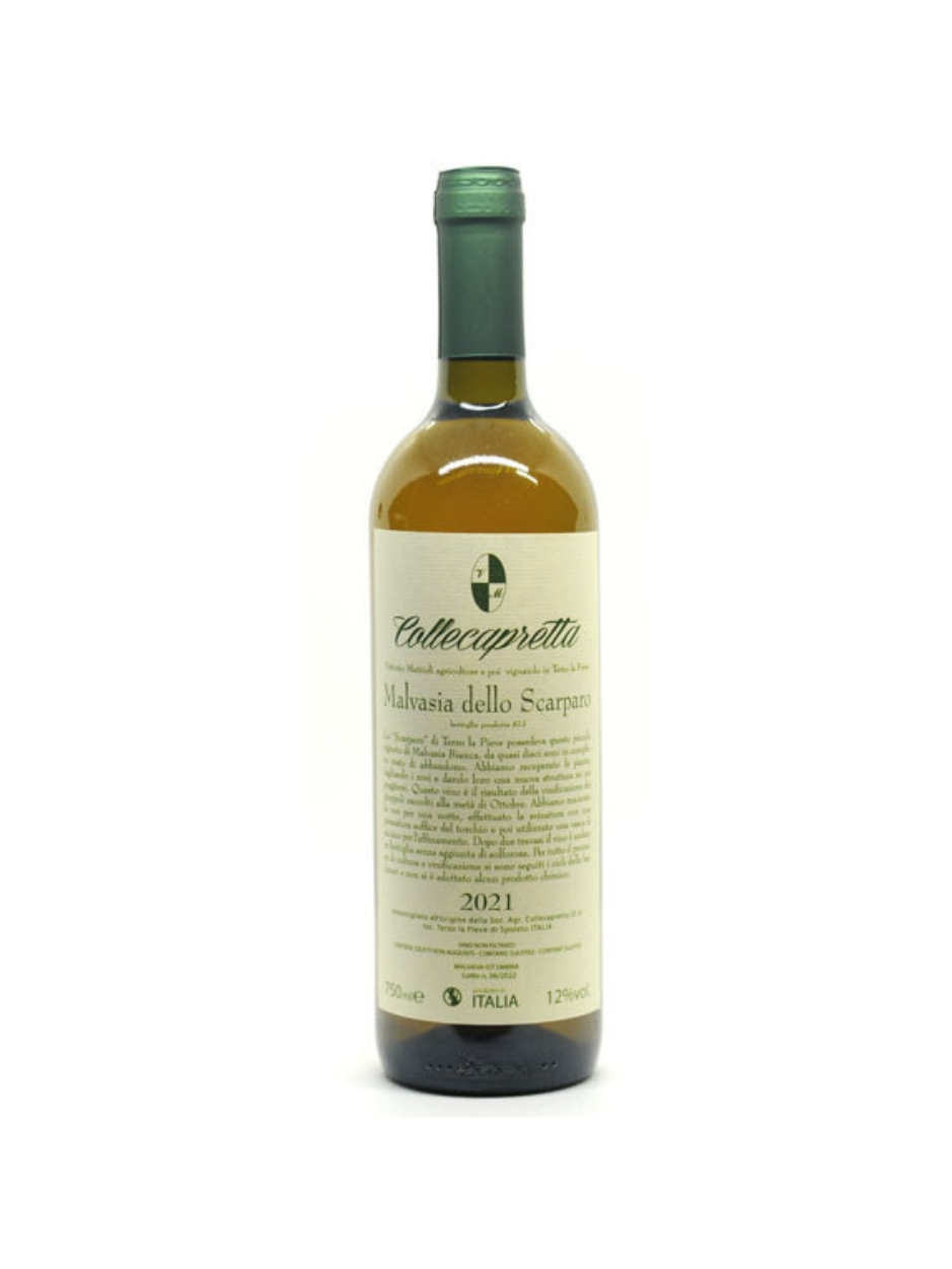 L’Orange wine Malvasia dello Scarparo della cantina Collecapretta è prodotto con uve Malvasia Bianca in purezza.