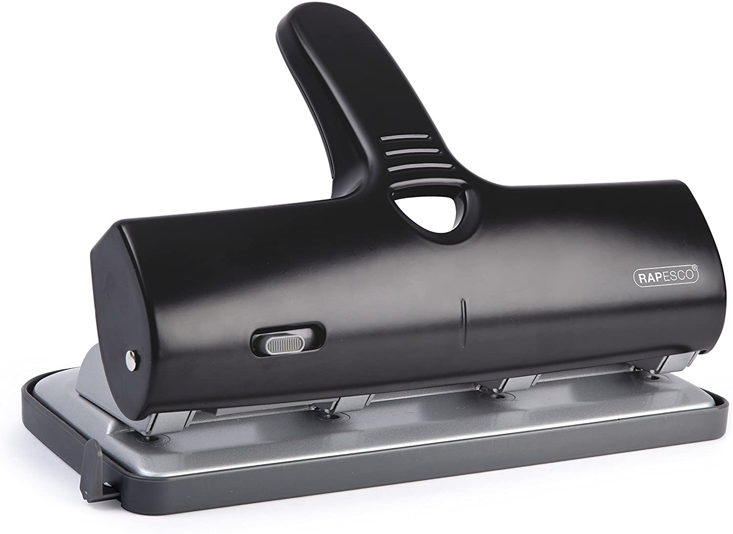 Rapesco Perforatore ALU 40 a 4 fori fissi dal corpo robusto in metallo verniciato con impugnatura ergonomica. Capacità di perforazione fino a 40 fogli da g 80. Nero PERFORATRICI