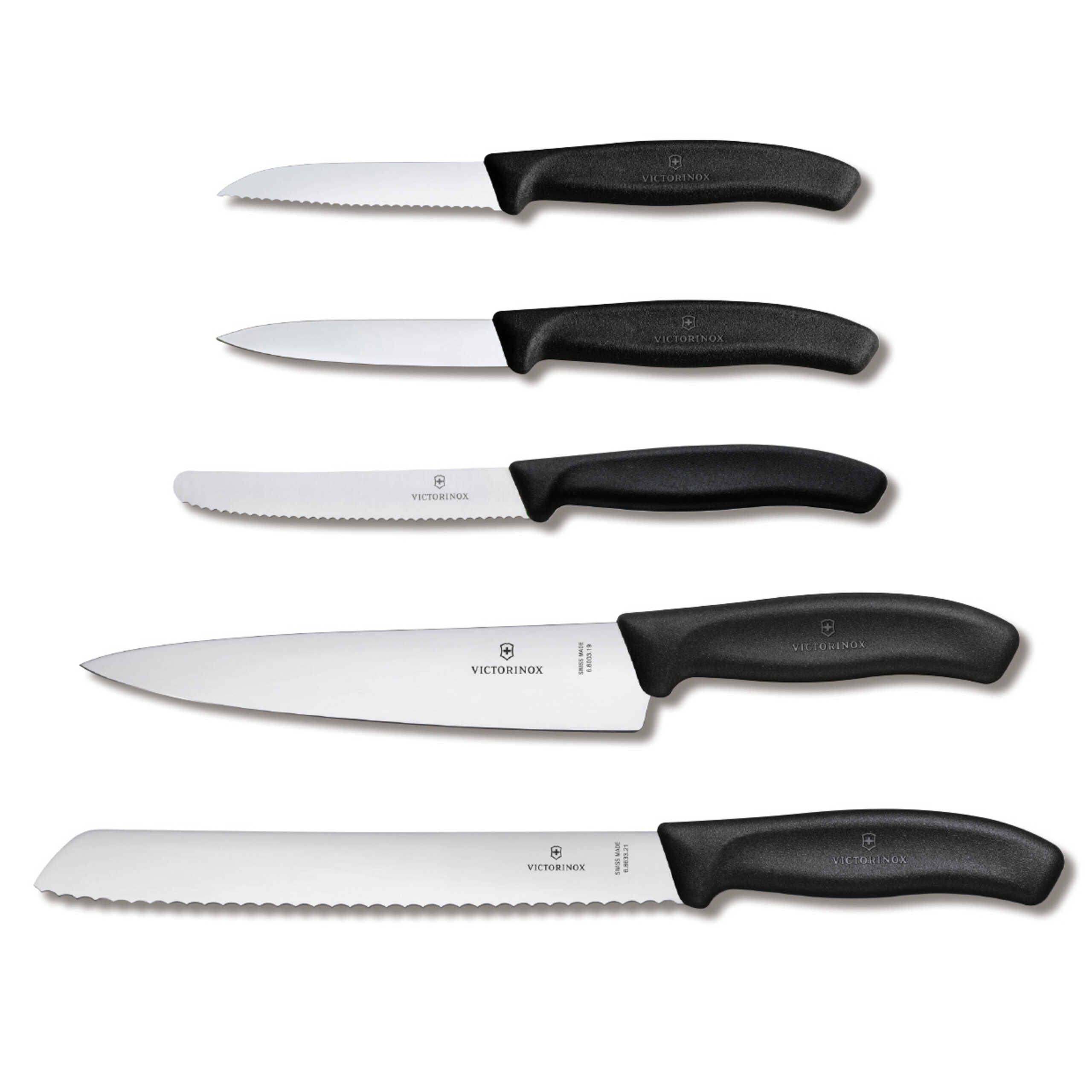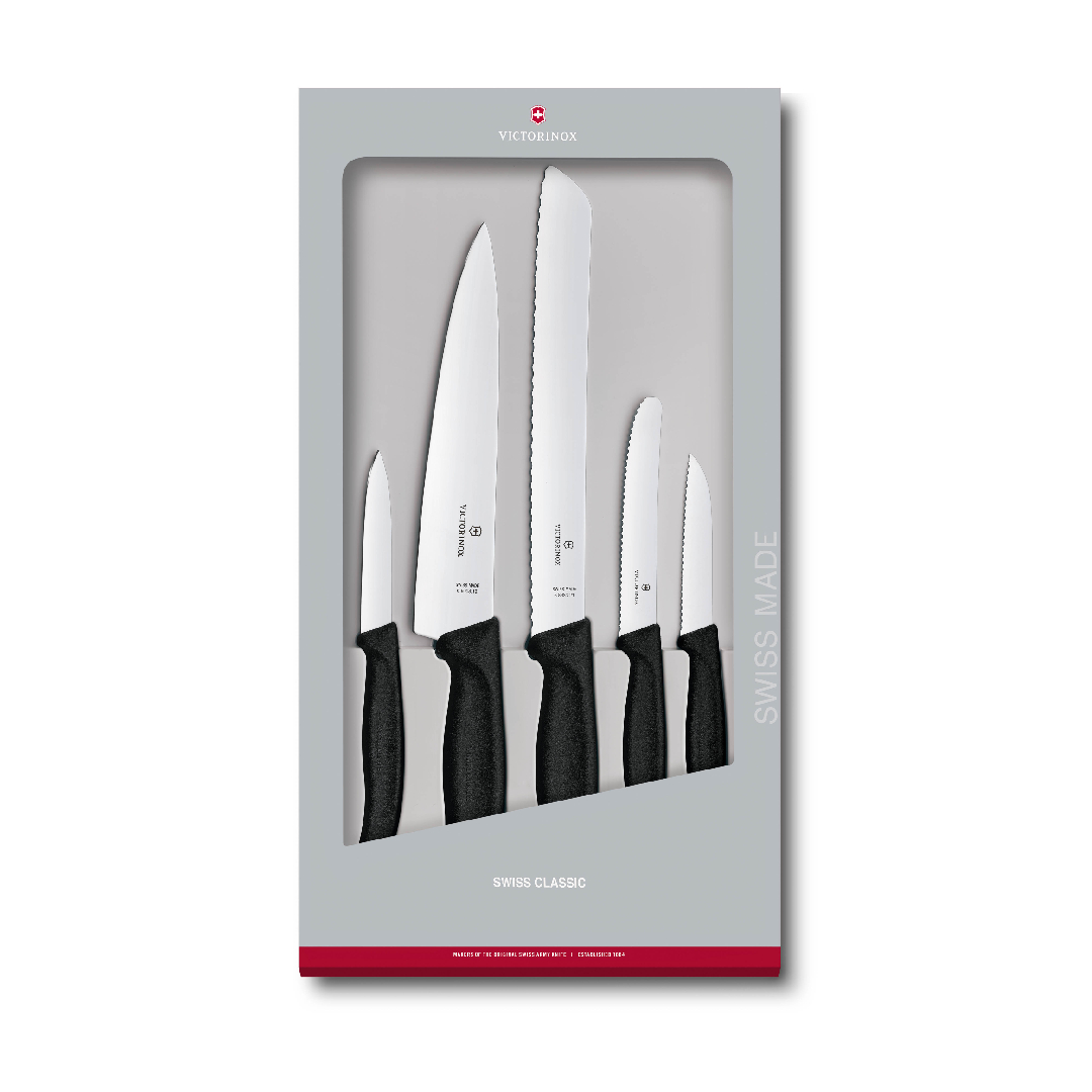 Swiss Classic Set è composto da 5 coltelli da cucina prodotti da Victorinox con impugnatura ergonomica e lama in acciaio inox.